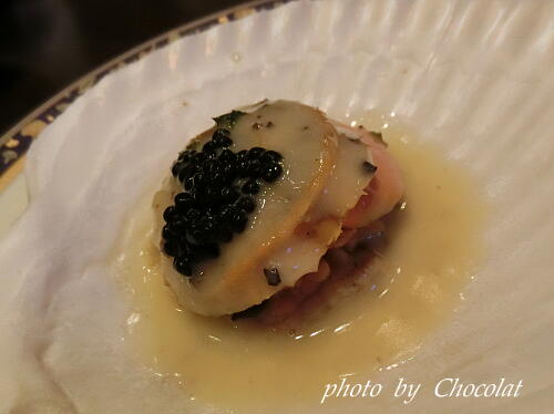 帆立貝のポワレ トリュフソース アブルーガを添えて!