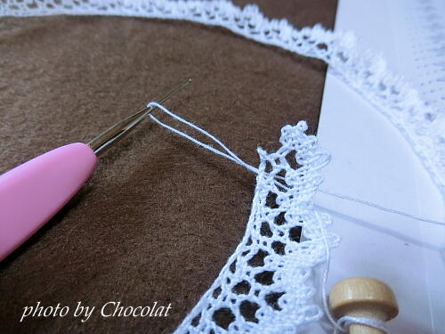 丸い布地に縫い付ければ 小さなドイリーになりますね